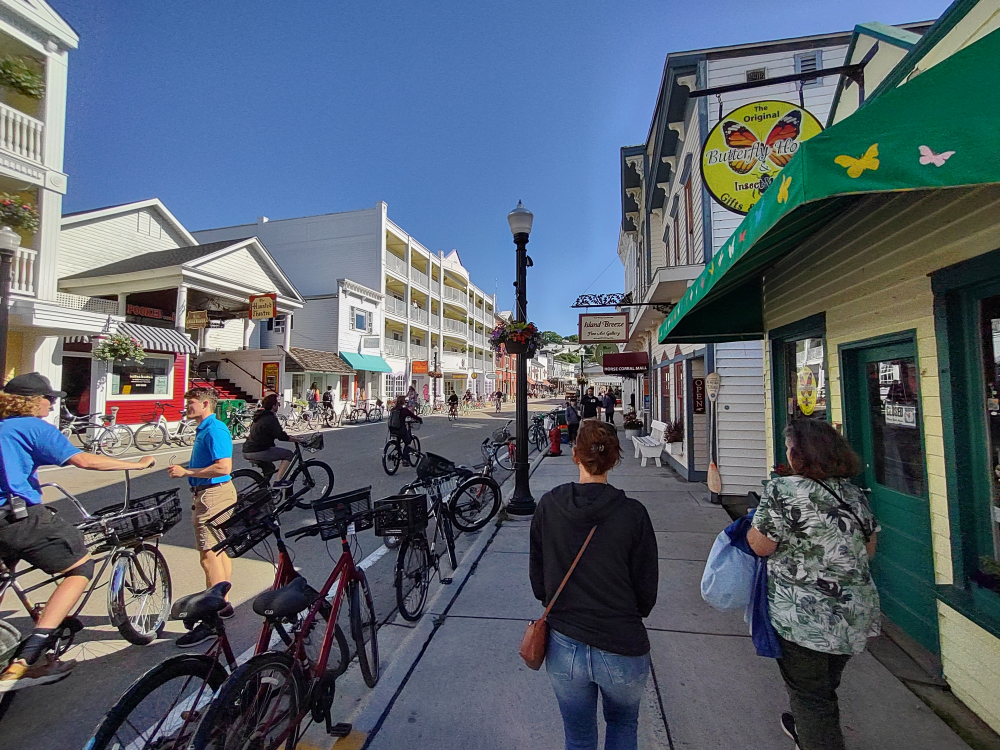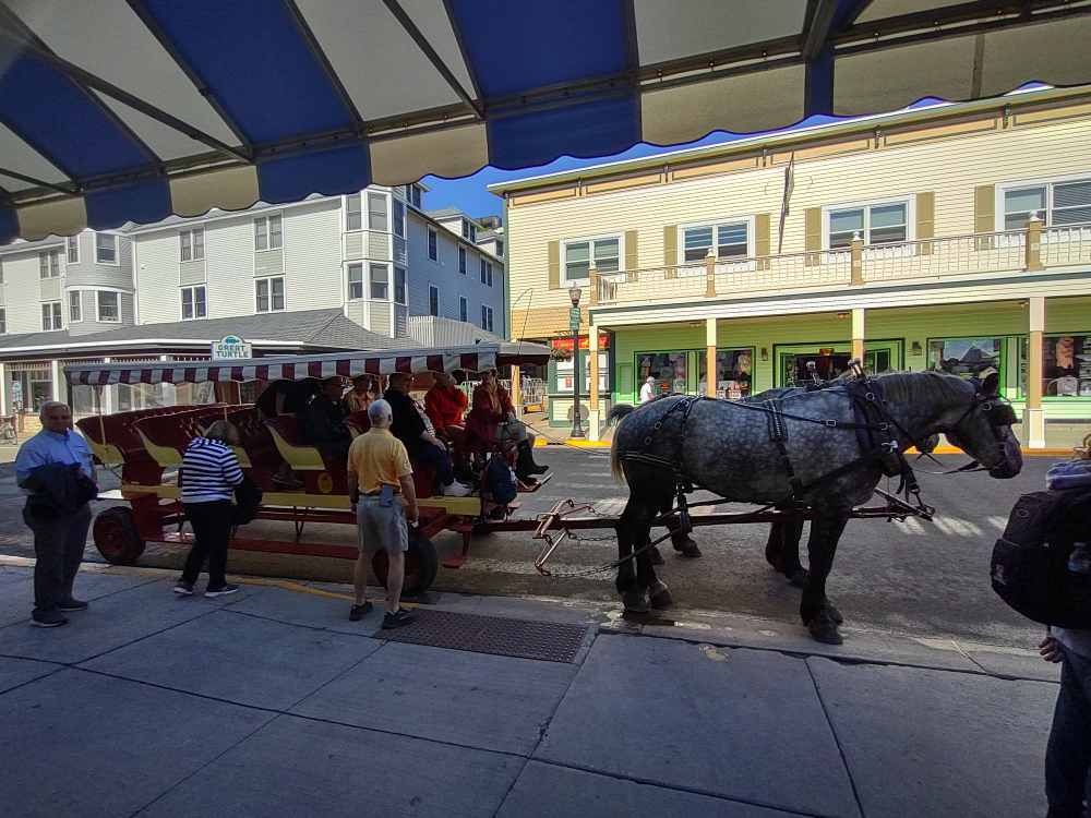 We took the ferry to Mackinac Island. There are no cars on the island, only horse carriages and bicycles.