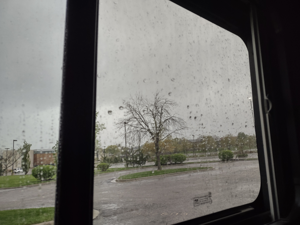 Our first night near Kansas City, Kansas. It rained all day, but our roof vent fan did not leak.