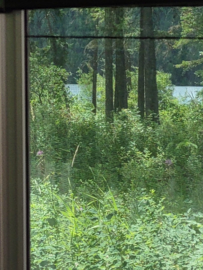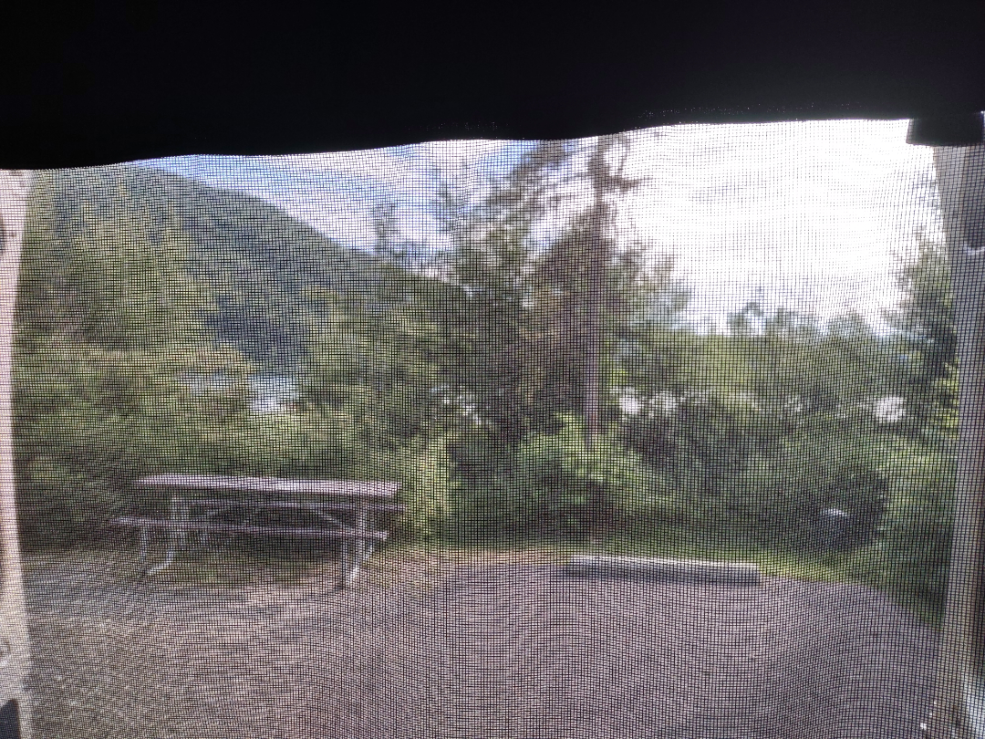 Lake as seen through screen in Campervan.