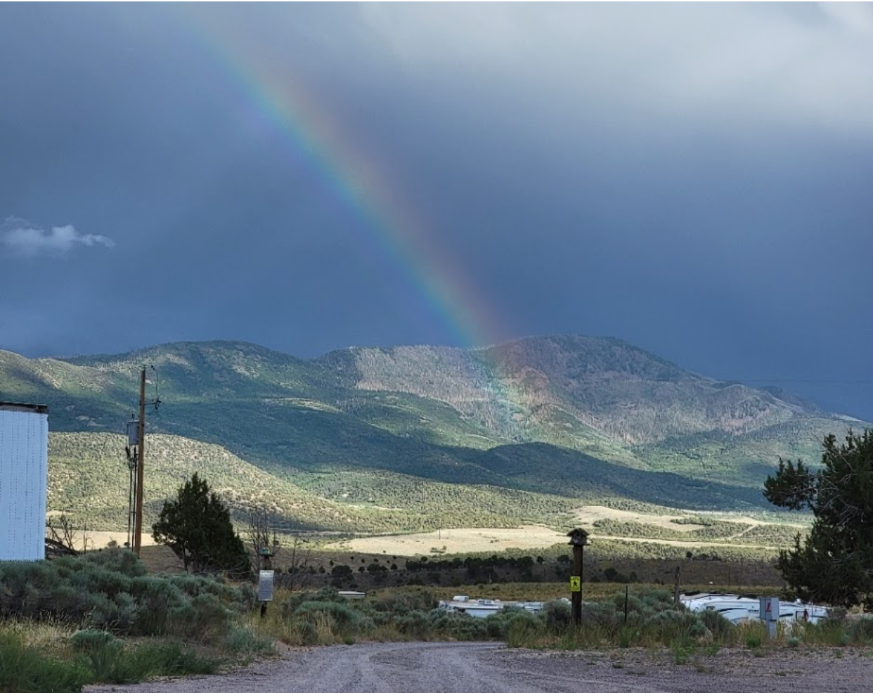 View of RV park with Mountains and Rainbow in background>