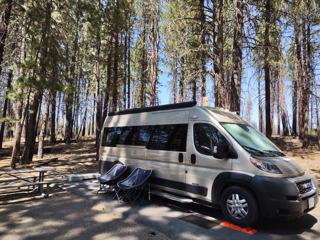 We stayed at Collier State Park Campground. There was a forest fire a few years back so the trees were sparse